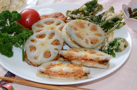 レンコンのニンジンはさみ揚げ