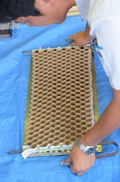幼苗のうちに一重の花を咲かす苗を間引き、人気の高い八重の花を多く生産するための作業です。